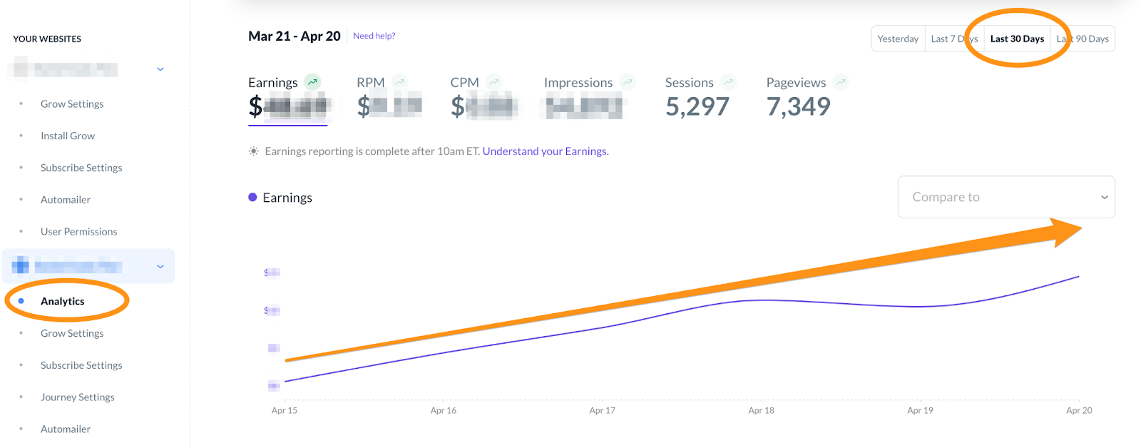 When you log into Grow, you can check out the Analytics tab to gather additional details about your Earnings.