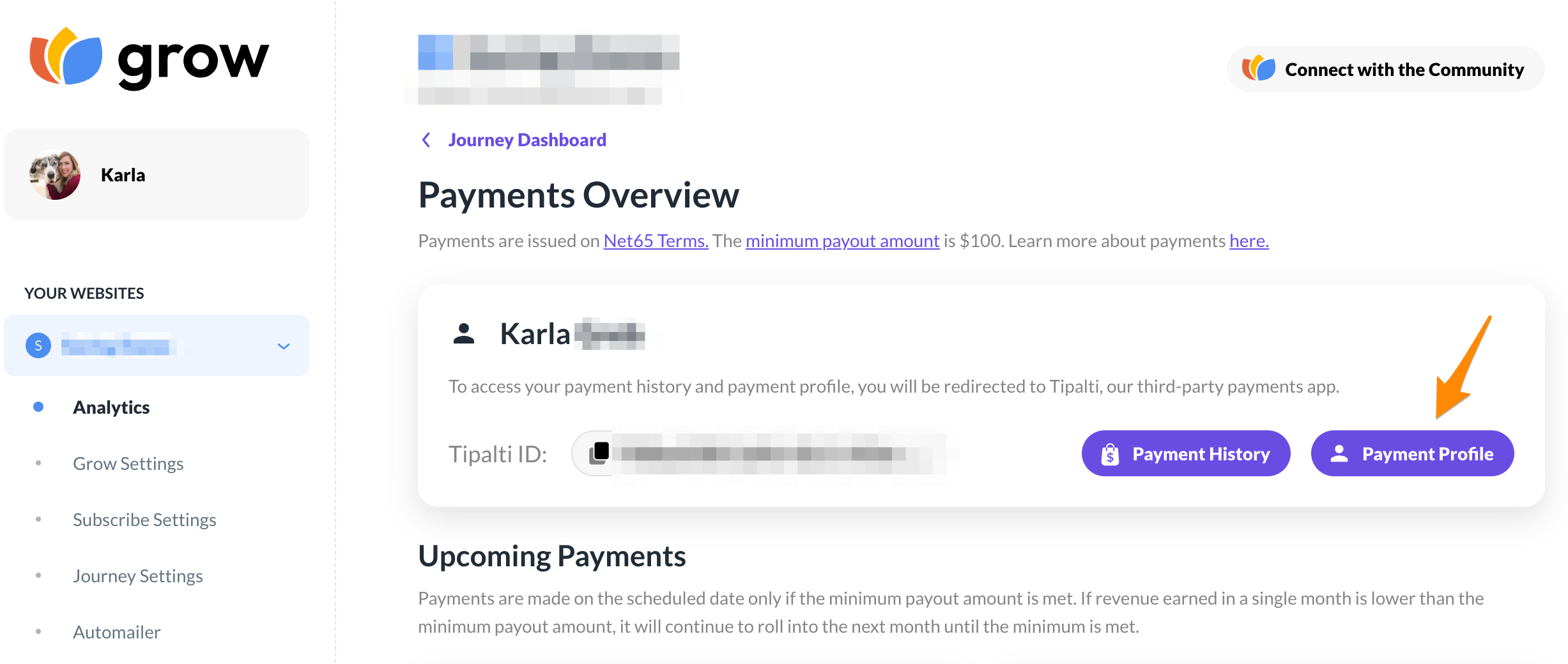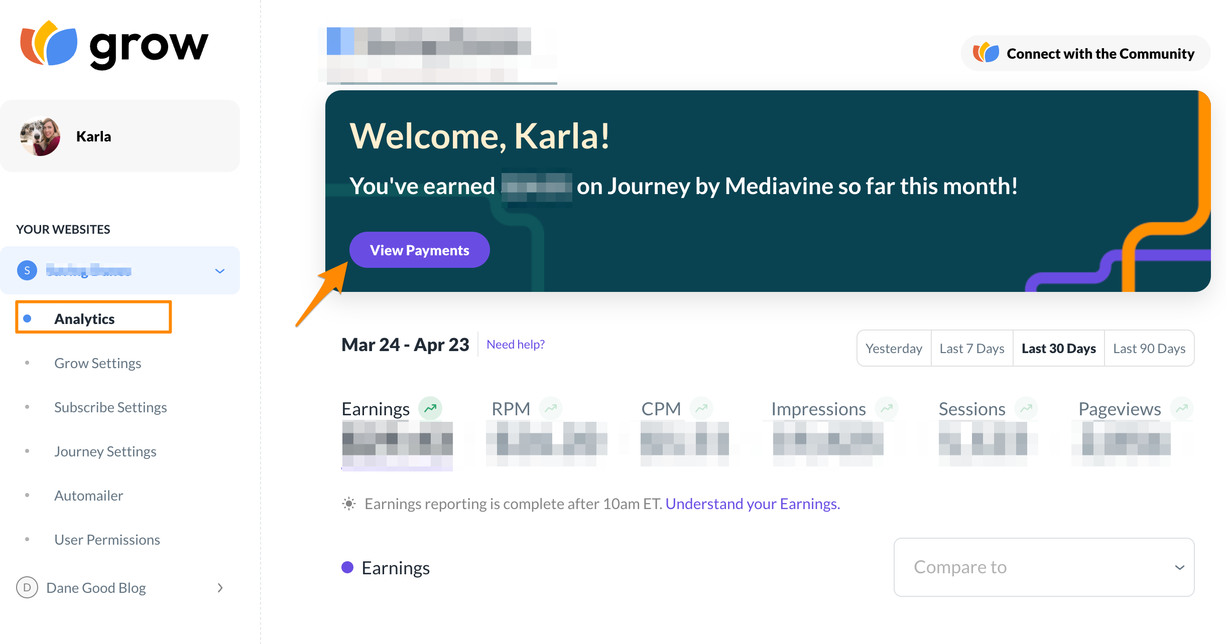 To get there, navigate to your Analytics Dashboard and click : View Payments