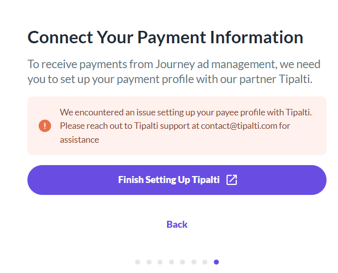 We encountered an issue setting up your payee profile with Tipalti.