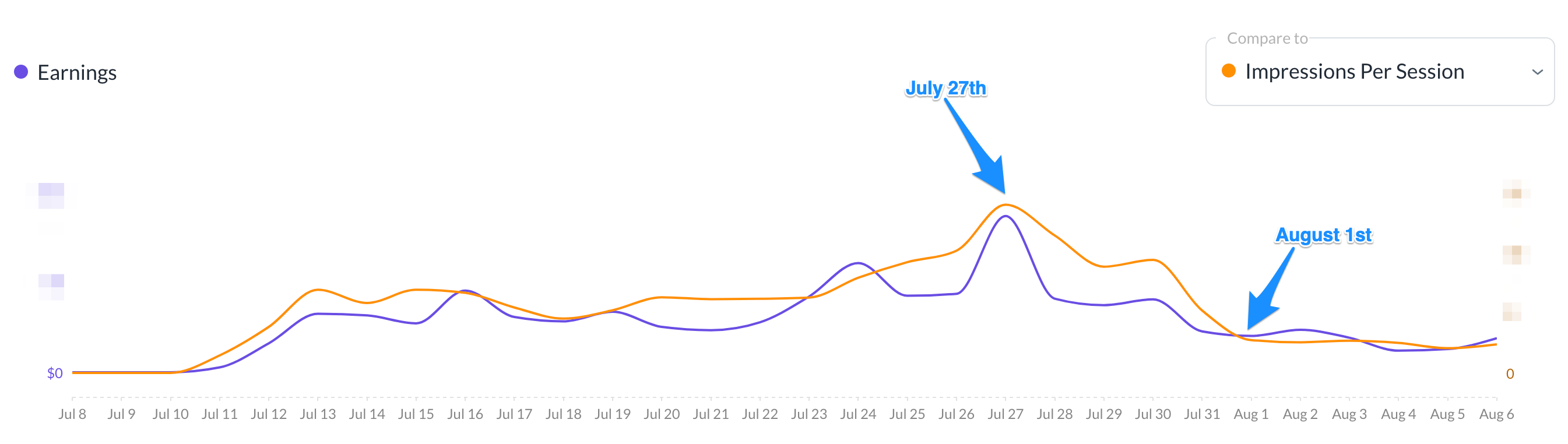 I do see a drop in impressions around the end of July - the start of August.