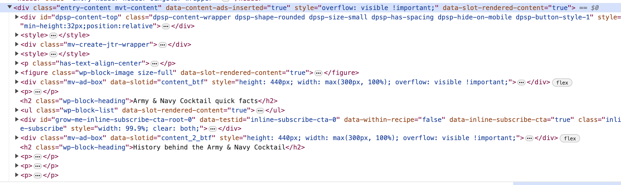 Here's an example from an article on a site where the HTML works well with the script since there are plenty of specific elements with hard breaks in between them (note the > next to each element that indicates a hard break):