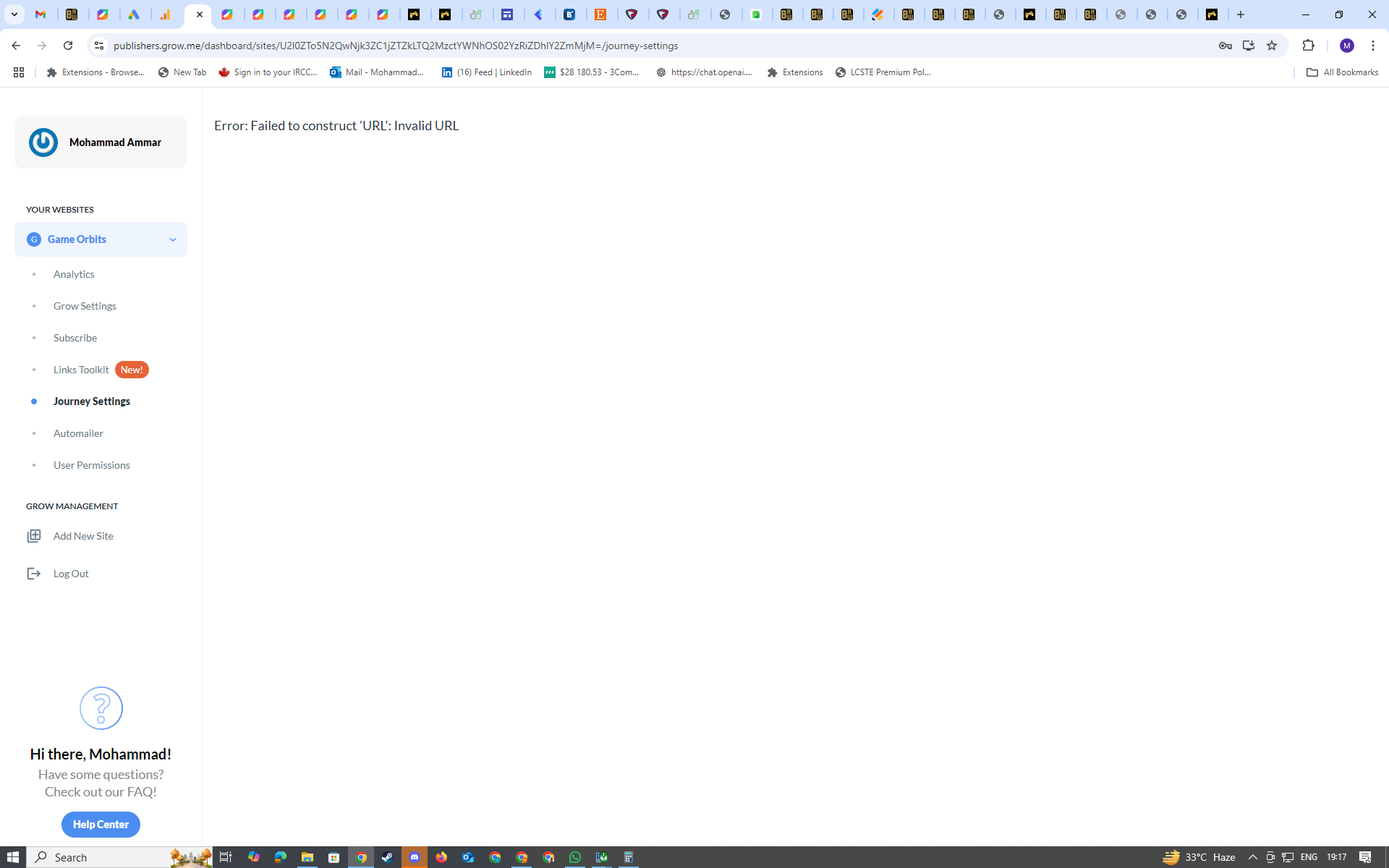 Hey Support also I cant seem to open my journey settings , this is the error i am getting