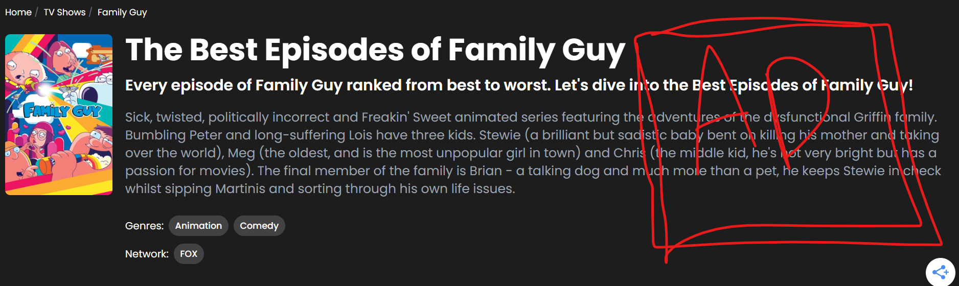 here is an example page for you to see https://episodehive.com/tv-shows/family-guy