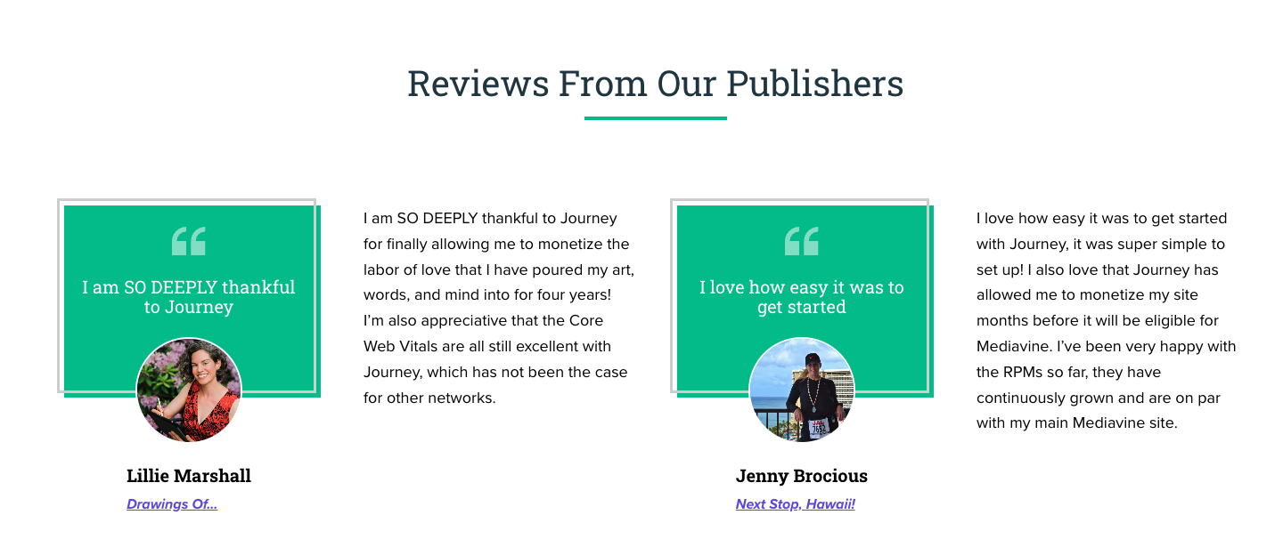 Hi, I'm hoping to see what Journey looks like on a website. I found it odd that the two websites they feature on their homepage, https://www.journeymv.com/ are both not running ads.