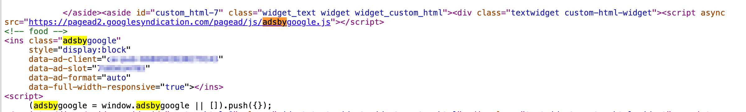 Hi Cindy Her! It looks like there are still a number of AdSense scripts running on the site. They'll look similar to this: