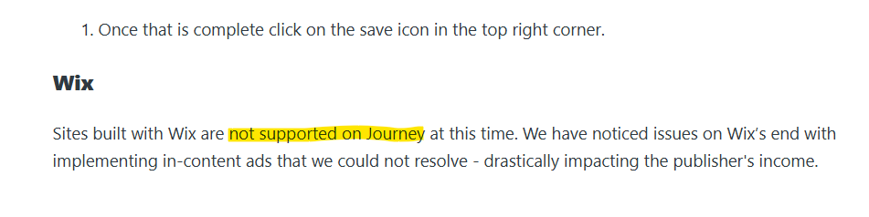 CompletedI was just accepted into Journey, but I just saw a post that said you do not currently support Wix websites …..