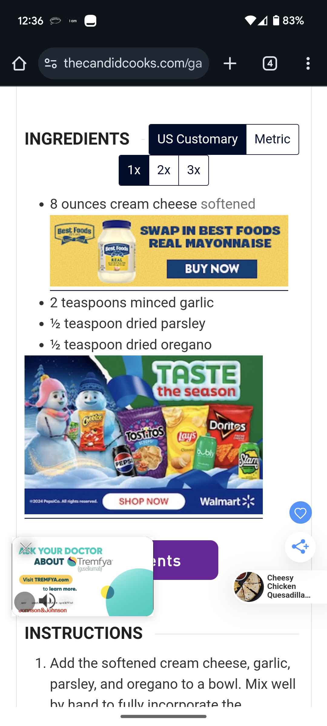 We have recently been seeing ads showing up in between ingredients in our recipe cards (Best Foods ad example below). Is there a way to turn this off as it is causing a poor user experience? If not, can you please disallow this for our site (TheCandidCooks.com)?