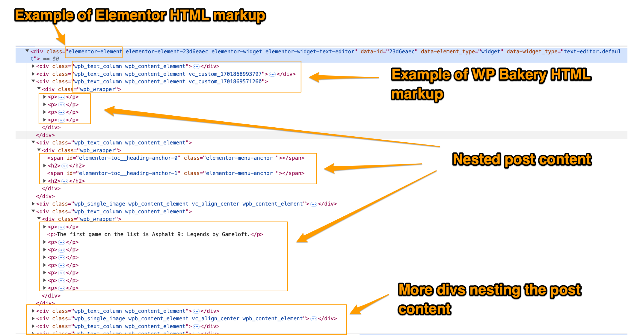 To illustrate further though, right now, the HTML of your site is a mix of WP Bakery and Elementor (see screenshot below).