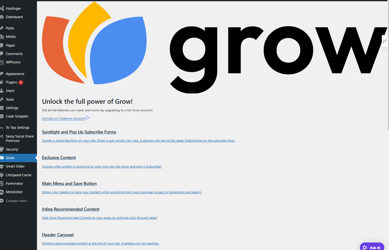 Grow for WP: version: 1.5.1, author: Grow, Auto-updates disabled