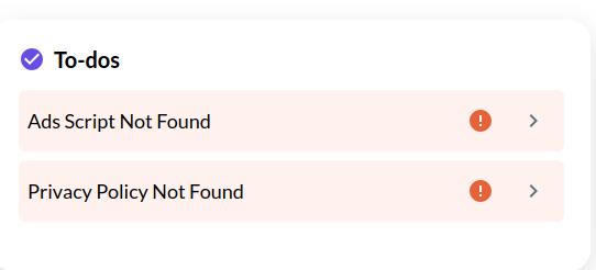 This works great and the ads show on the website (you can check here) and the custom text is injected in the privacy policy page, however in my Dashboard I get this error message.