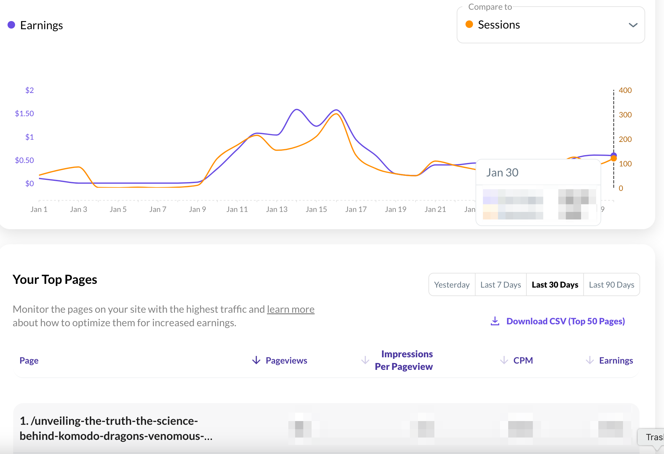 Finn Oakley Try logging out of your Grow dashboard, clearing browser history, and then logging back in - we're seeing the 30th on our end (see a screenshot of your dashboard below). Thumbnails were removed from the top pages report, so it's normal not to see them.