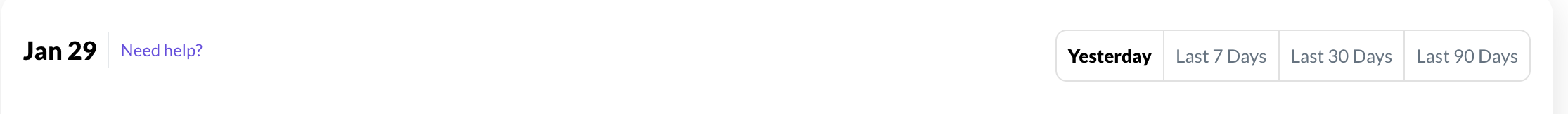 Finn Oakley everything looks normal on our end - reporting will always show the previous day (so today, you would see up to 1/30, which is what we're seeing in your dashboard). I would just keep in mind that reporting for the previous day isn't finalized or fully updated until 10am EST.