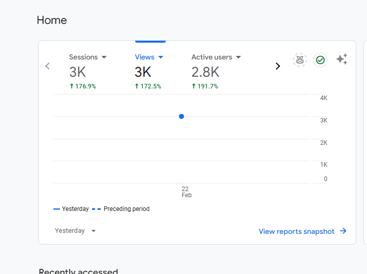 On February 22, Google Analytics reported 3,000 sessions, but Mediavine's dashboard only counted 1,491 sessions, and the same happened on February 21. This difference seems to be affecting my earnings calculations. Could you please help me understand why there is such a large gap? Is there an issue with tracking or integration that needs to be fixed?