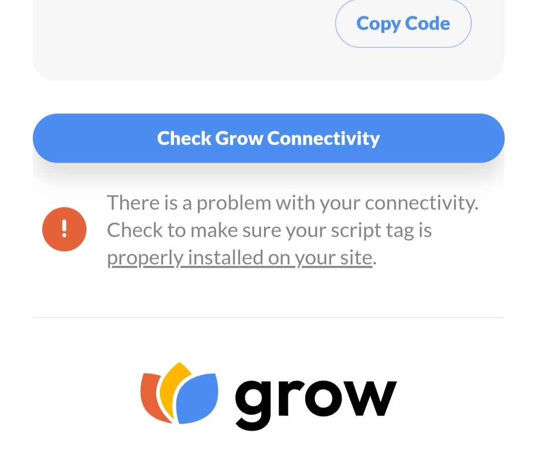 To run Grow, you'll need to install this script on your site. Check Out This Troubleshooting Guide for tips. Make sure to clear your cache if you have one, then click try again.