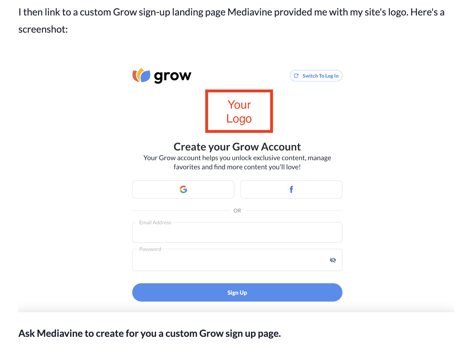 Custom Grow Sign Up Page?