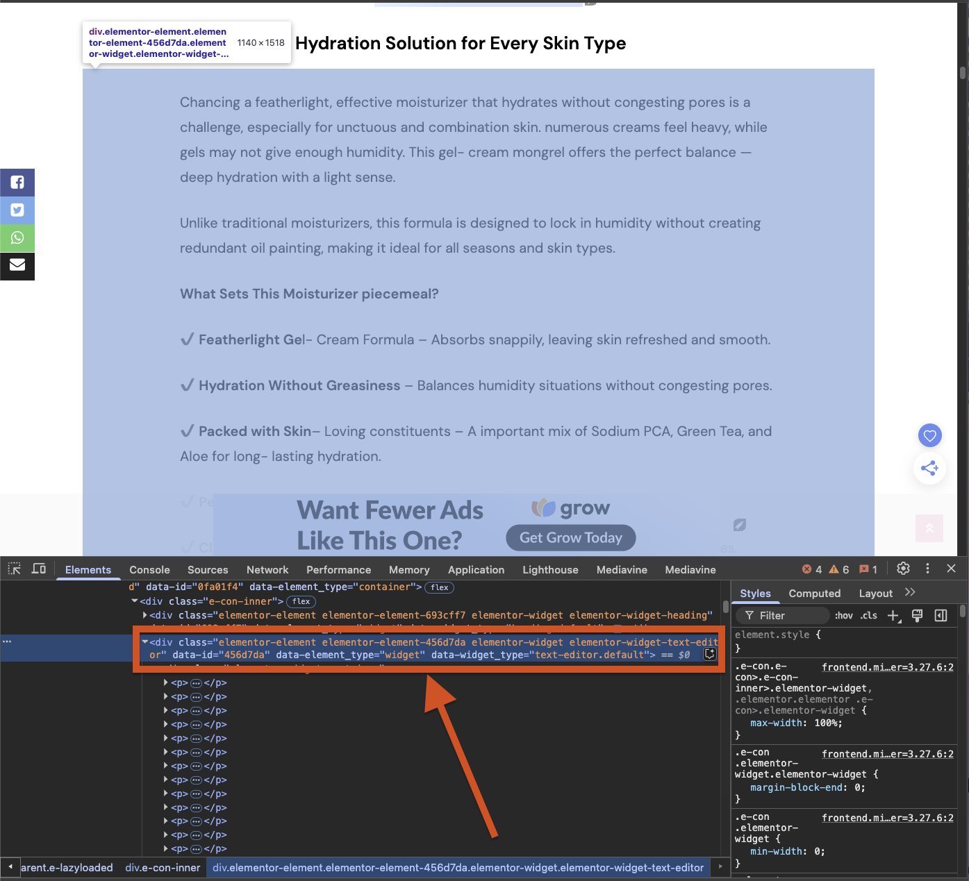 I recently encountered an issue where in-content ads were not populating correctly on my website due to how my content was structured in Elementor. Specifically, my written content was wrapped within <div> elements, causing your script to place ads between these divs instead of properly within the content.