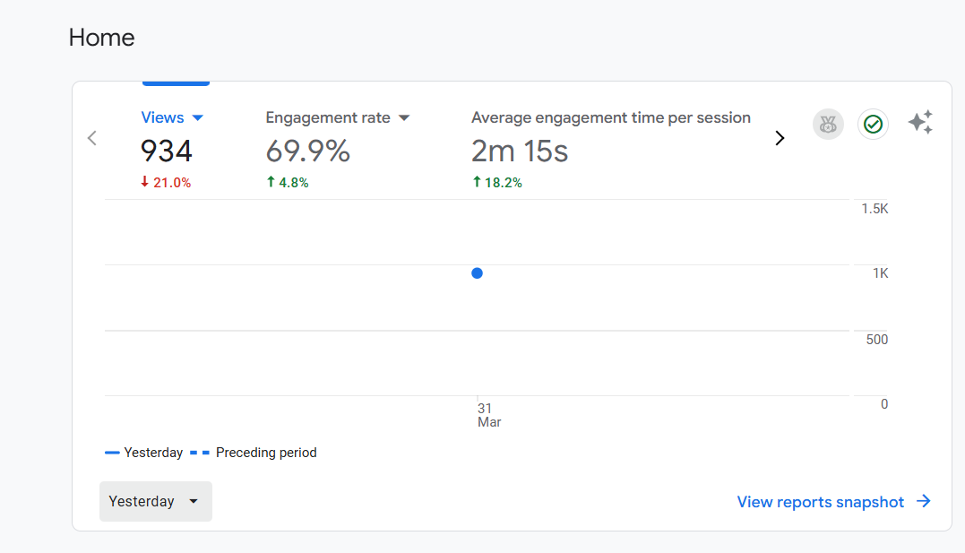 I noticed a significant discrepancy in the pageviews reported for March 31. My Google Analytics shows 934 pageviews for that day, but the Mediavine dashboard only reflects around 400.