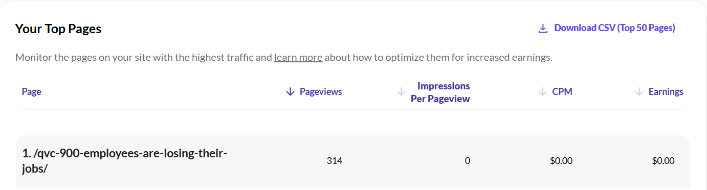 I just wanted to mention that this isn’t a one-off situation—it’s been happening every now and then. I’ve noticed several instances where pages that typically earn well show no earnings at all, and there are often noticeable discrepancies between the pageviews in my Google Analytics and what’s showing in the Mediavine dashboard.