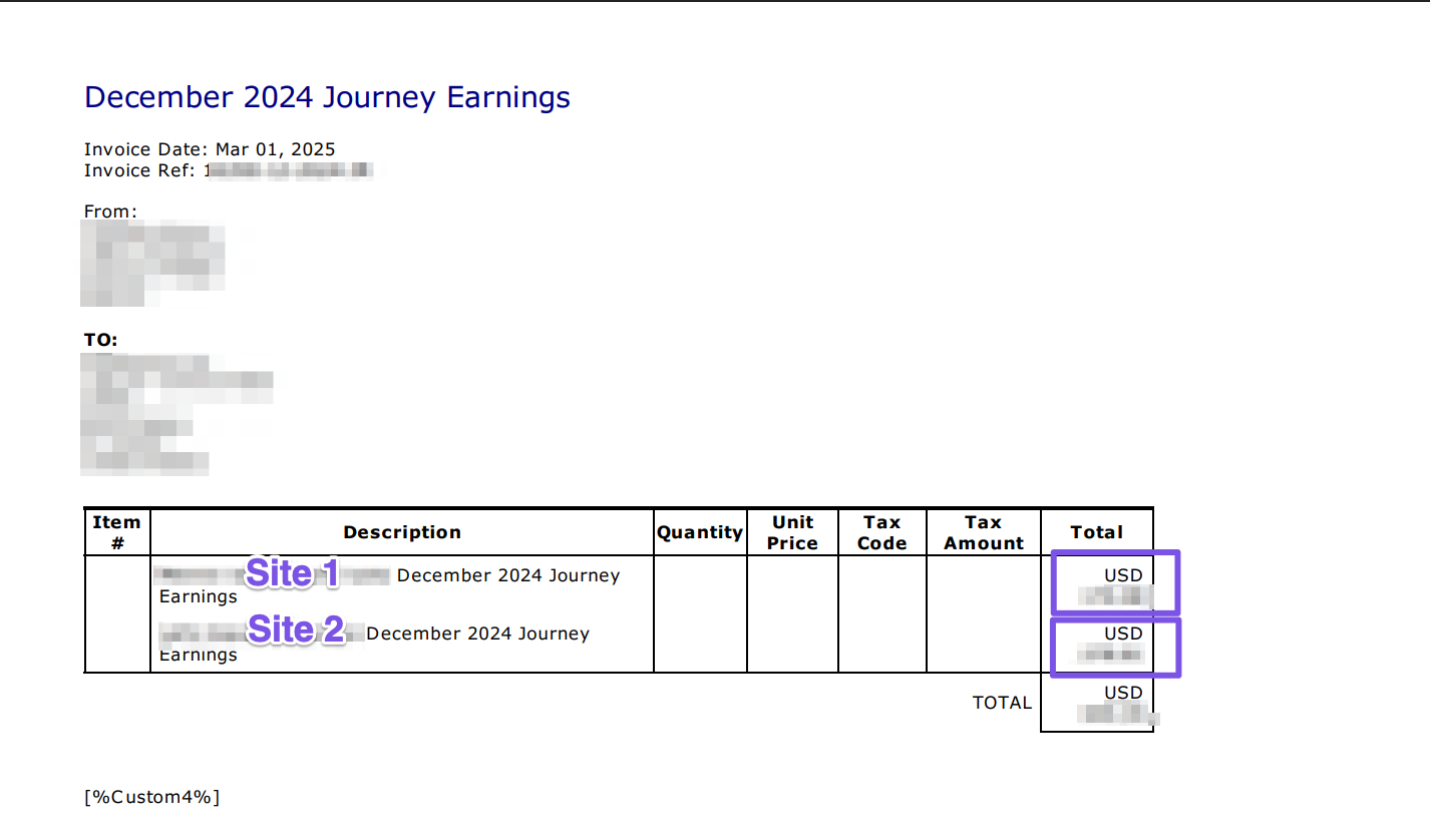 Hey there, I received one cumulative payment for my two journey accounts but I would need to know which site made what. Is it possible to receive two separate reports of past payments? thanks a lot.