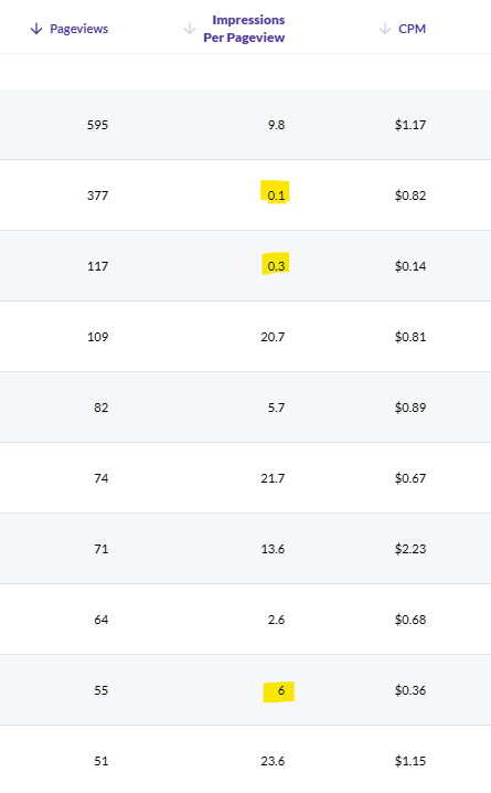 In this case, you could have your host check to see if the traffic you're seeing from Bing is bot traffic, if you're considering looking into this further.Additionally, I did notice that one of your examples in your screenshot is for your homepage - this page typically does not monetize well, and, in the case of Journey, we don't place in-content or sidebar ads on these pages.
