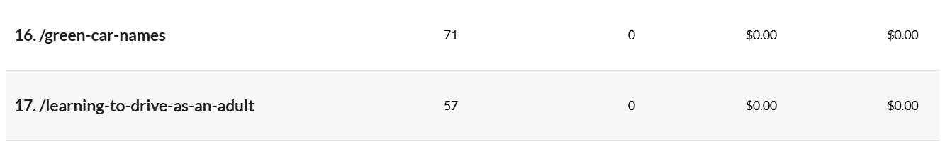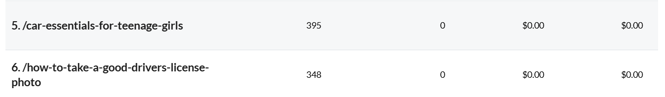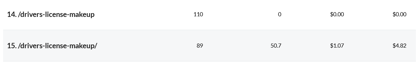 A blog post of mine is listed twice in my Top Pages, once ending with a forward slash and the other without. The url without the forward slash has more page views than the one with, but the impressions per page view, CPM and earnings are all zero.