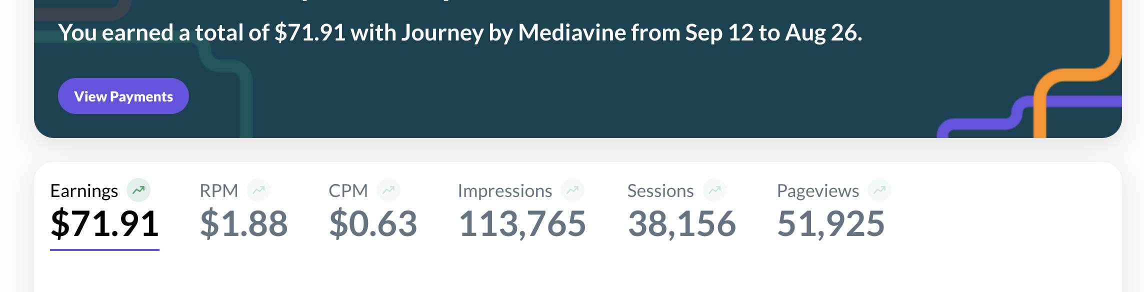I'm nearing the one year mark with Journey and I've yet to reach the threshold of payment because my RPM and CPM are ridiculously low.