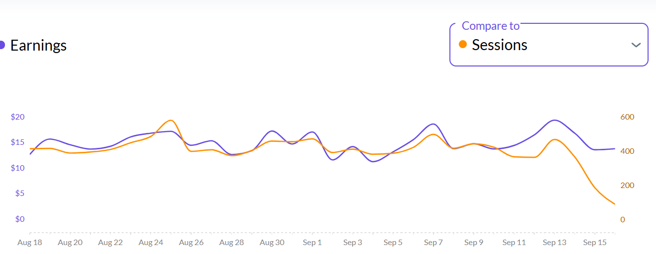 Sessions and Impressions Decreasing, but earning is stable. Also RPM increase when Session dropped