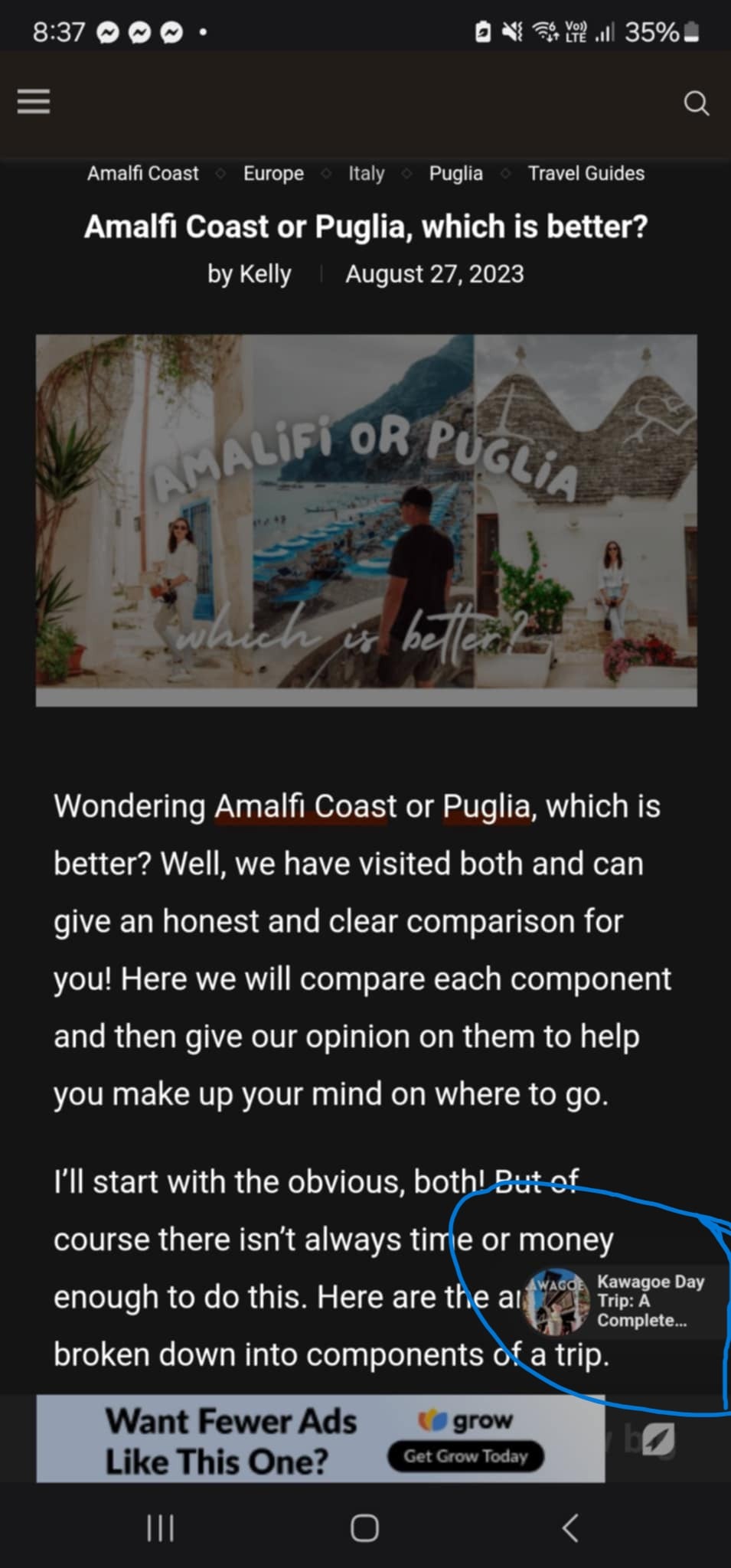 Is there a way to turn off this feature? Ihave put the screenshot to show what I mean as I dont know its name. This link keeps popping up and it is too easy on your phone to hit it and get taken to a new blog page.