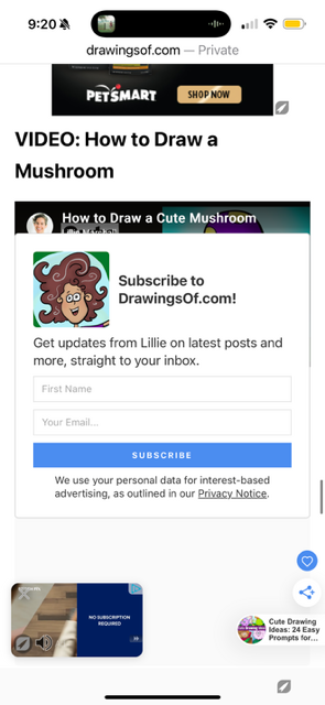 Hello! I'd love some help with this issue. On mobile, my YouTube video embeds on DrawingsOf.com are being blocked by various elements of Journey and Grow such as ads and subscribe pop-ups (see screenshots). Even when I can get the blocking part to move, the video doesn't play when I click it. I'd love any help fixing this! Thanks in advance.
