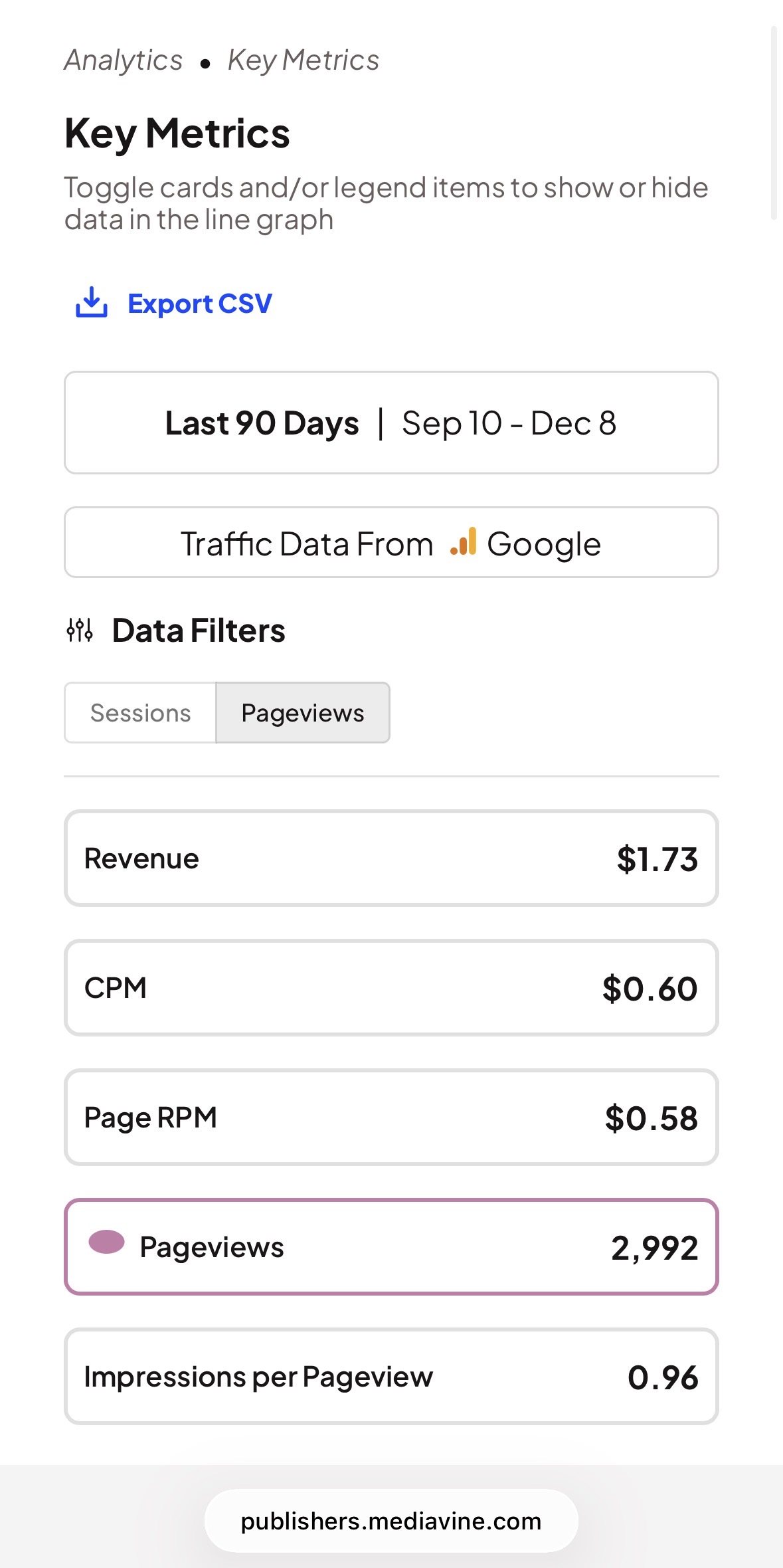 My CPM is 0.60 and impressions per page view is 0.96