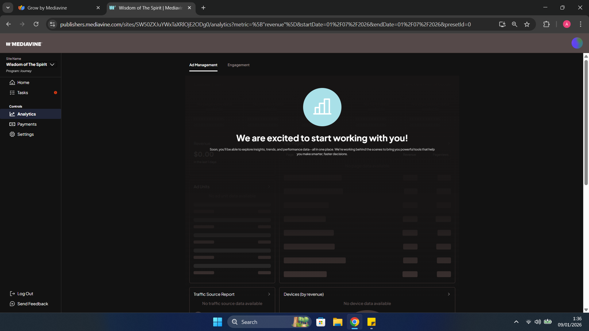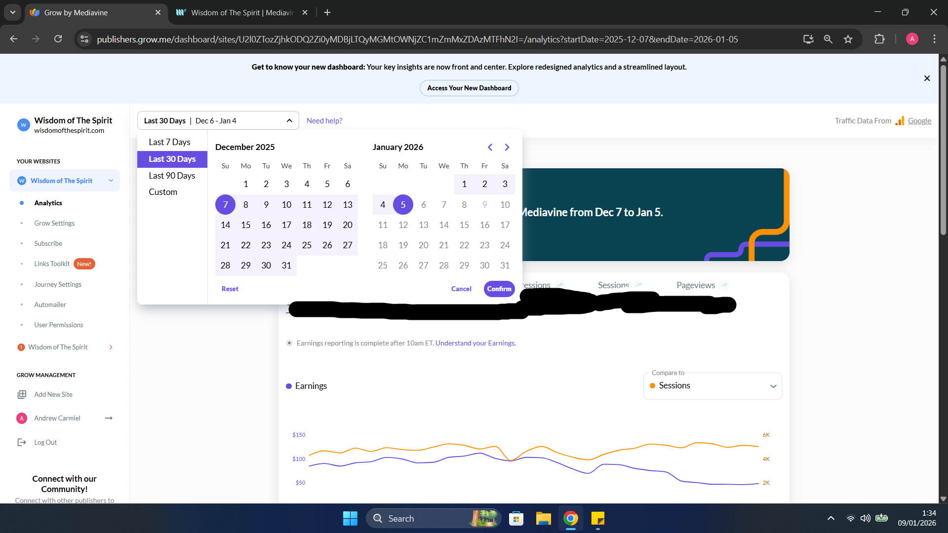 This isn't resolved for me. My dashboard hasn't updated since Jan. 5, 2026. I signed out and signed back in, and nothing refreshed. There is a message to “Access your new dashboard," which seems to be the regular Mediavine dashboard (not Journey). On that dashboard, it says, “We're excited to start working with you!” I've been on Journey since Jan 2025. My website is ConsumerRescue.org